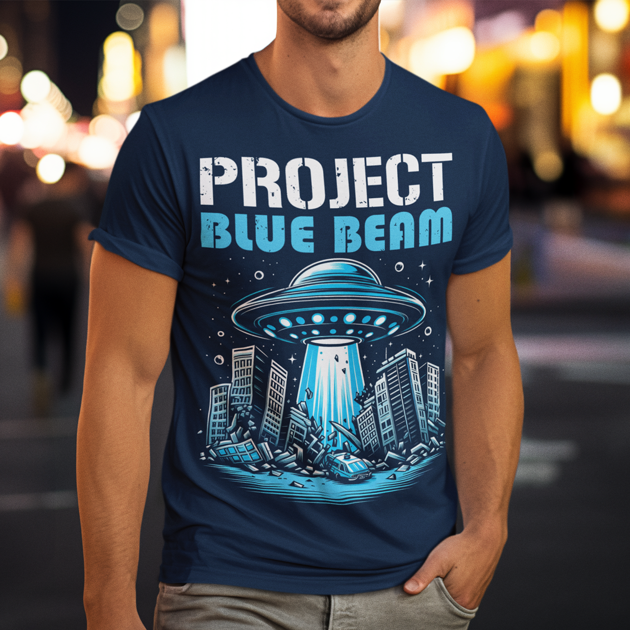 Step into the mystery with our Project Blue Beam t-shirt — a bold design inspired by one of the most talked-about conspiracy theories. Featuring striking futuristic graphics that blend holograms, cosmic imagery, and shadowy symbolism, this shirt captures the intrigue of secret agendas and hidden truths.